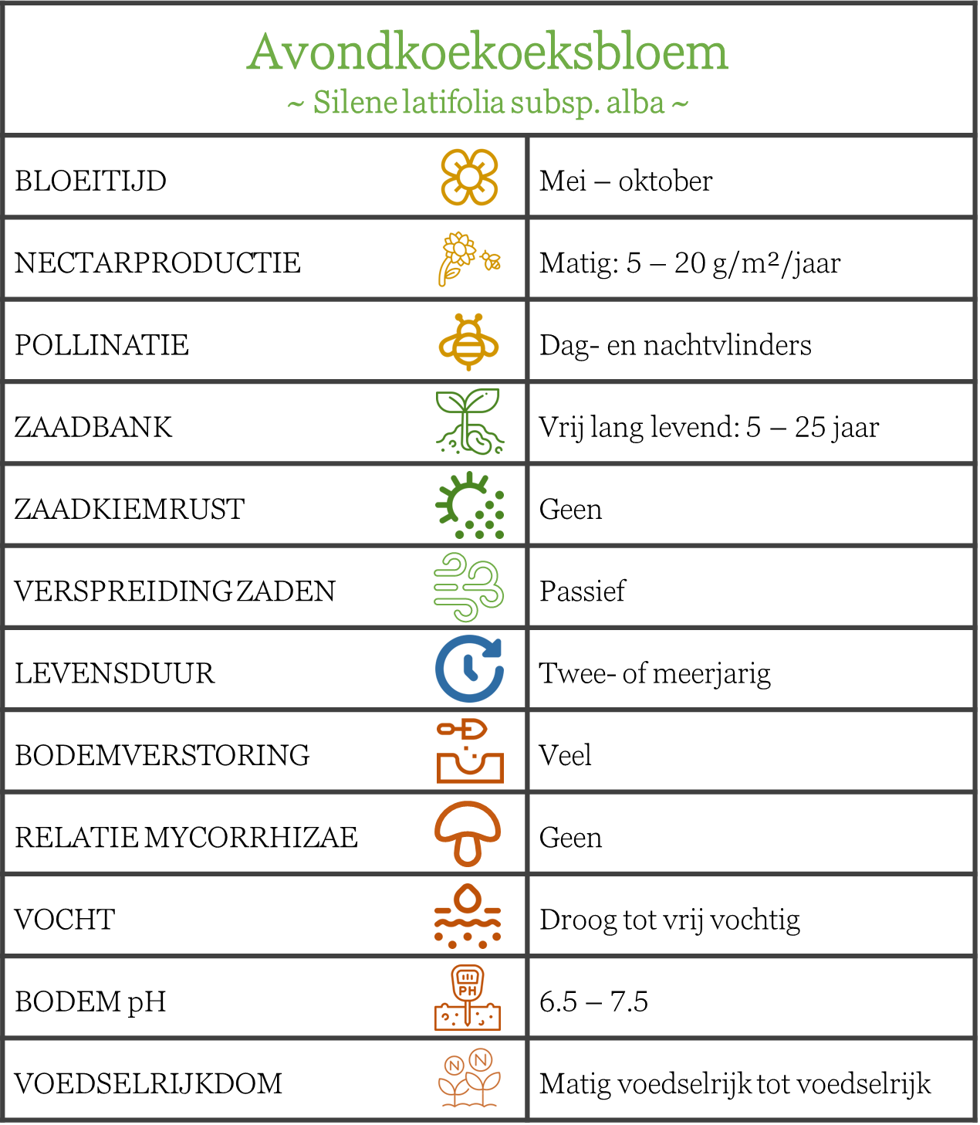 Avondkoekoeksbloem (Silene latifolia subsp. alba) is een twee- tot meerjarig lid van de Anjerfamilie (Caryophyllaceae). De soort komt voor in graslanden op voedselrijkere, droge tot vochtige bodem of pioniersvegetaties zoals kapvlaktes in bossen. Avondkoekoeksbloem is een echte cultuurvolger en doet het in Vlaanderen behoorlijk goed.
